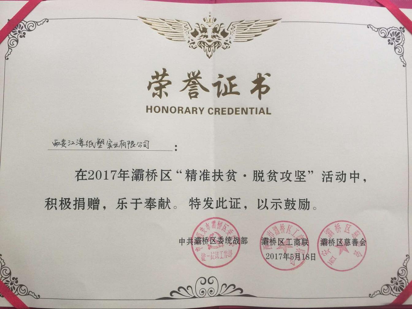 | 我公司在2017年灞橋區(qū)“精準(zhǔn)扶貧,脫貧攻堅(jiān)”活動中,努力回報社會,積極捐贈,樂于奉獻(xiàn)。 [閱讀全文] | |||
